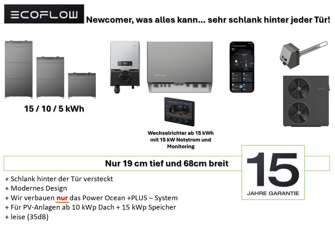 Für Balkonkraftwerke das System von ZENDURE, und für die Profi-PV-Anlagen die Systeme von HUAWEI und ECO FLOW ...