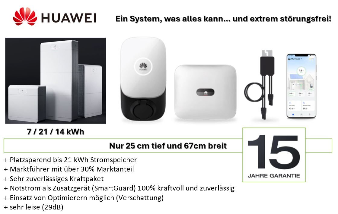 Für Balkonkraftwerke das System von ZENDURE, und für die Profi-PV-Anlagen die Systeme von HUAWEI und ECO FLOW ...