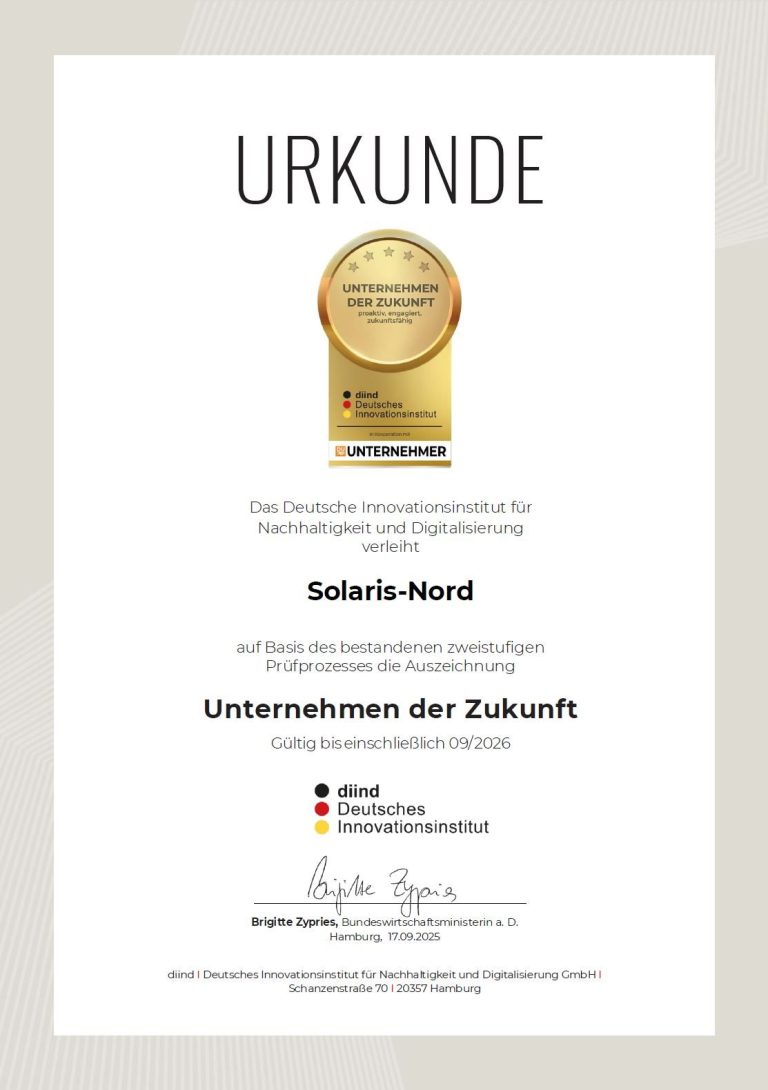 Wir freuen uns, Ihnen mitteilen zu können, dass Solaris-Nord zur Top 20%-Spitzengruppe zählt – und als „Ausgezeichneter Fachbetrieb“ prämiert wurde!